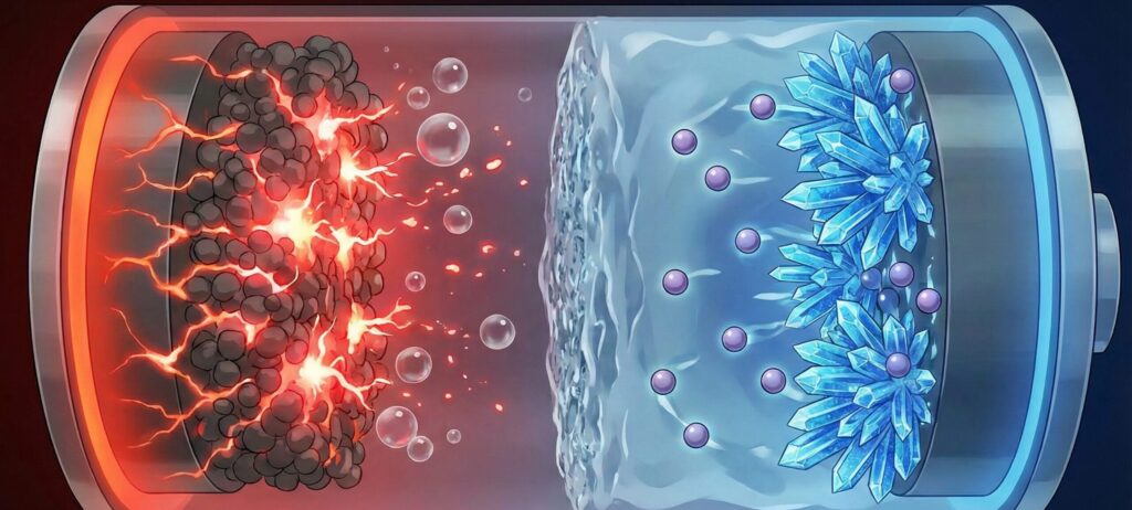 「高温」はリチウムイオン電池にとって最大の敵です。なぜなら、高温環境下では**一度進むと二度と元に戻らない「不可逆的な劣化」**が進行するからです。