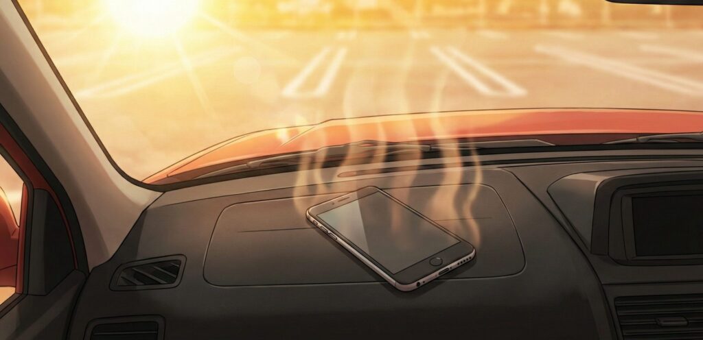 これらは夏場においては自殺行為です。「少しの時間だから大丈夫」という油断が、デバイスの破壊や車両火災につながります。直射日光が当たらない場所であっても、車内全体の温度上昇によりバッテリーは深刻なダメージを受けます。